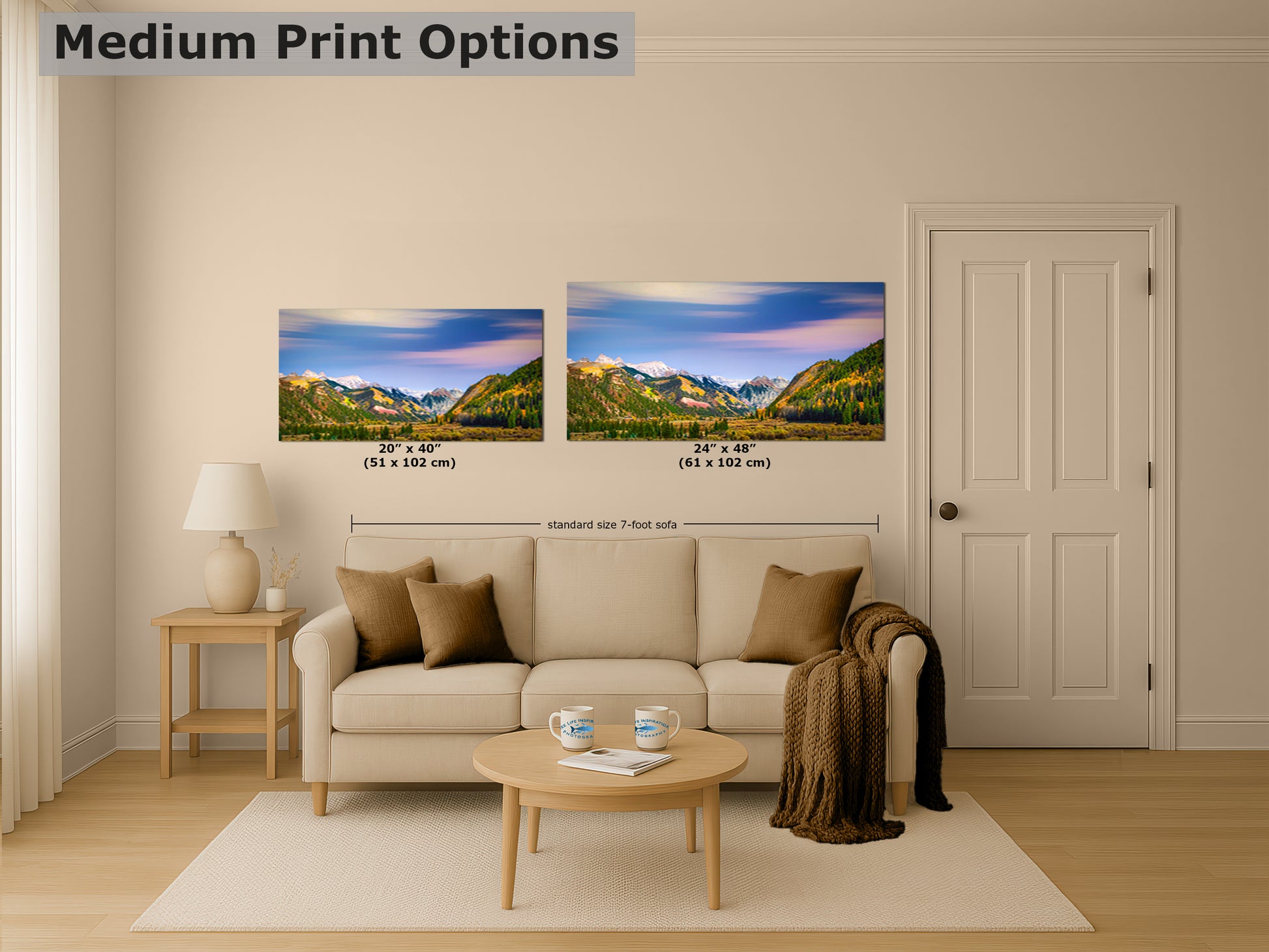 This high-quality panoramic landscape is ideal for creating a relaxing atmosphere, inspiring meditation, or elevating your living space with nature-inspired art. Whether hung in a dorm room, living room, dining area, or workspace, this piece invites tranquility and awe-inspiring scenery into your everyday environment.