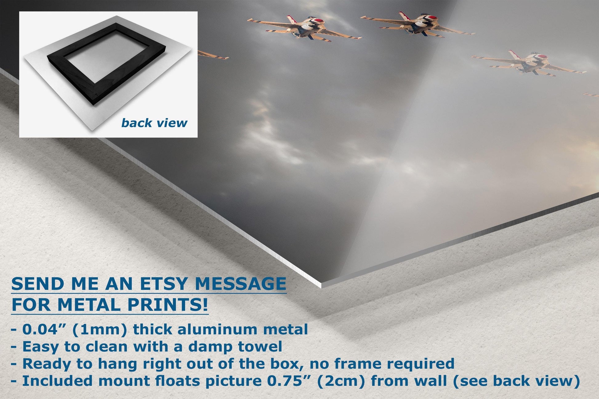 - Floating metal art: 0.04" (1mm) thick specialty coated aluminum metal includes a mount that floats the picture 0.75" (2cm) from your wall