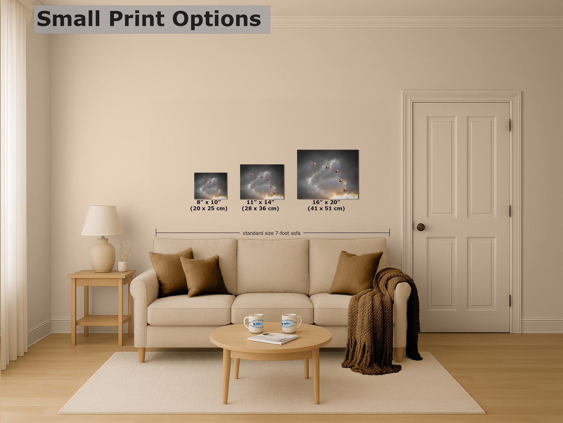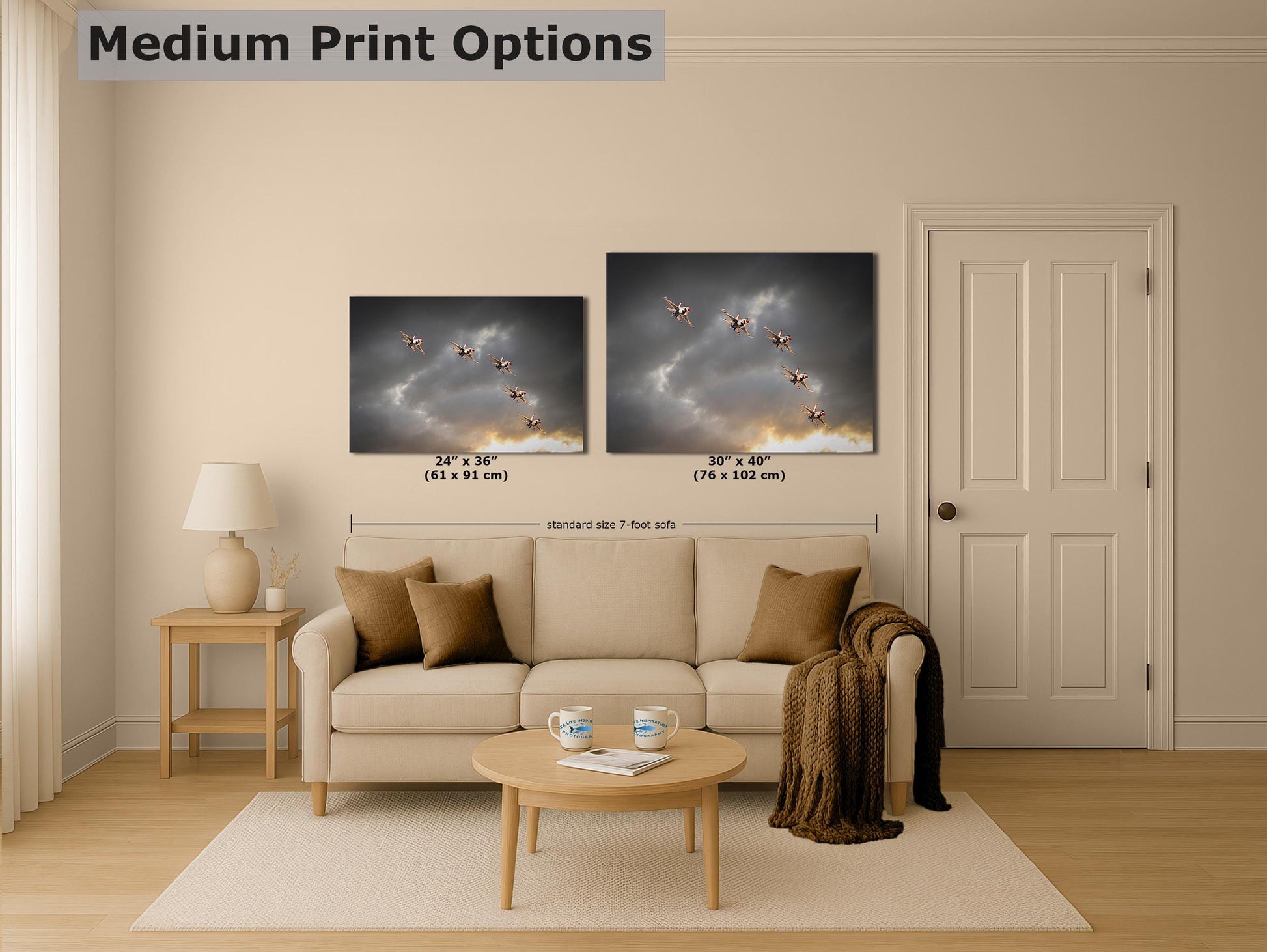 It's an invitation to reflect on our own journeys of overcoming challenges and pushing boundaries. Printed on high-quality canvas, this artwork brings the texture and depth of a painting, making it a unique addition to any space that values courage, adventure, and the art of flying.
