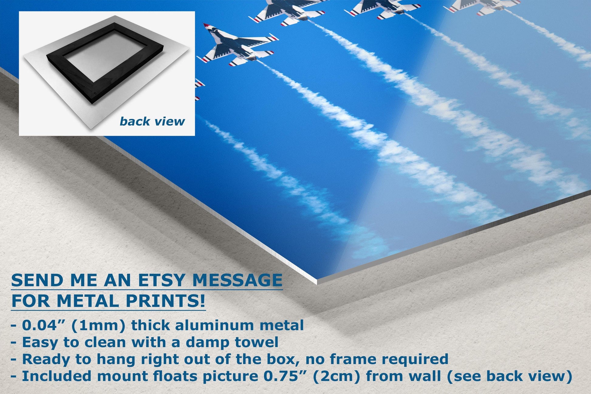 - Floating metal art: 0.04" (1mm) thick specialty coated aluminum metal includes a mount that floats the picture 0.75" (2cm) from your wall