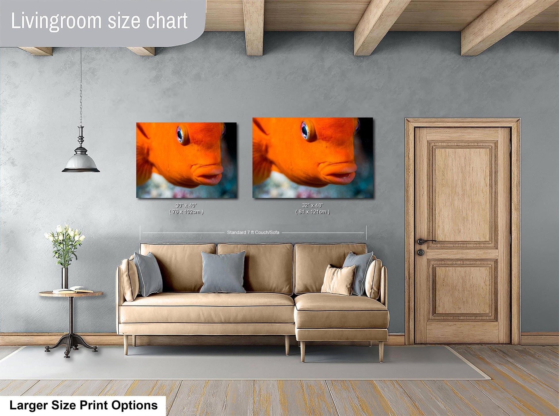 Bring the vibrant beauty of marine life into your space with this stunning Garibaldi Fish marine biology ocean life nature photo.