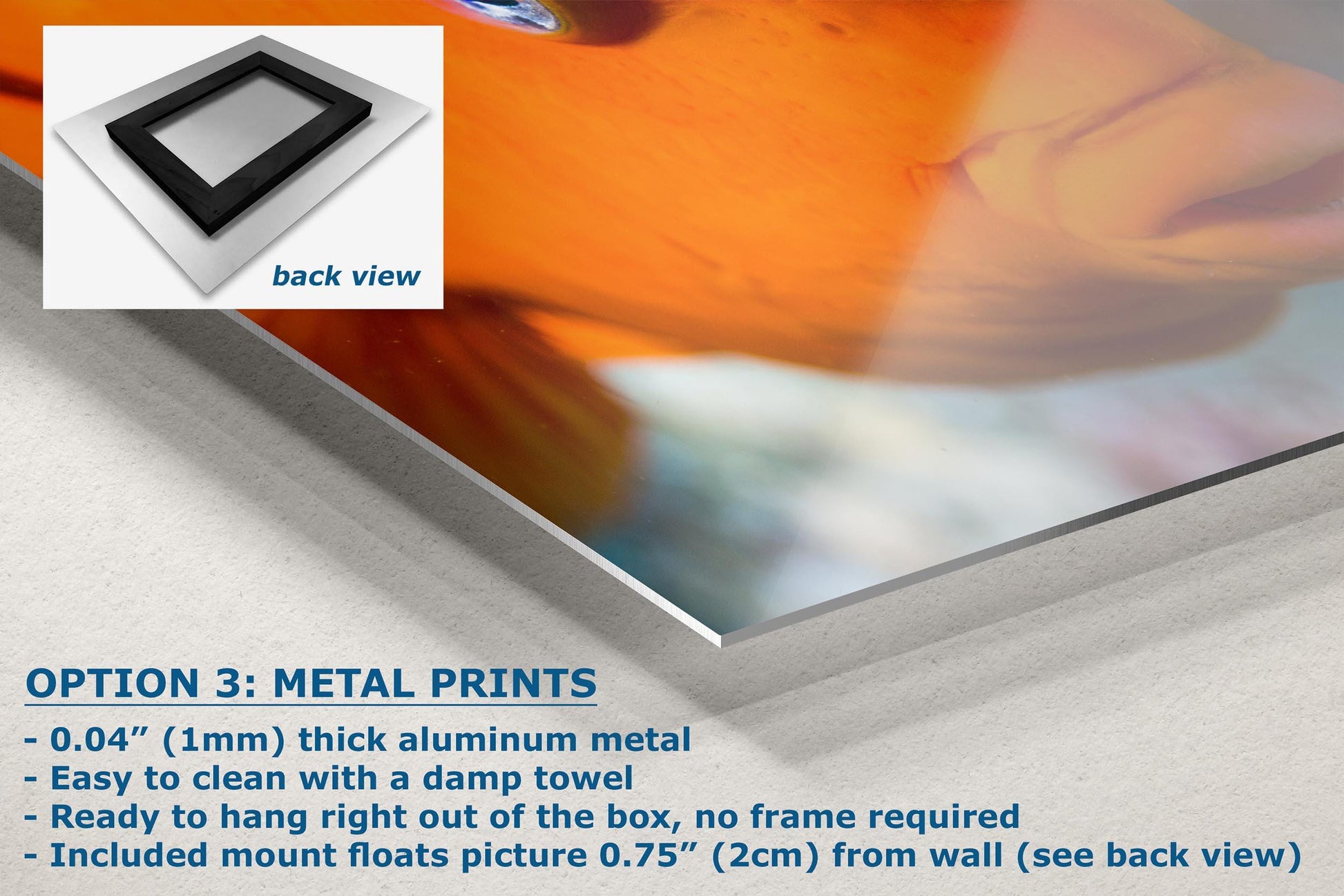 - Floating metal art: 0.04" (1mm) thick specialty coated aluminum metal includes a mount that floats the picture 0.75" (2cm) from your wall