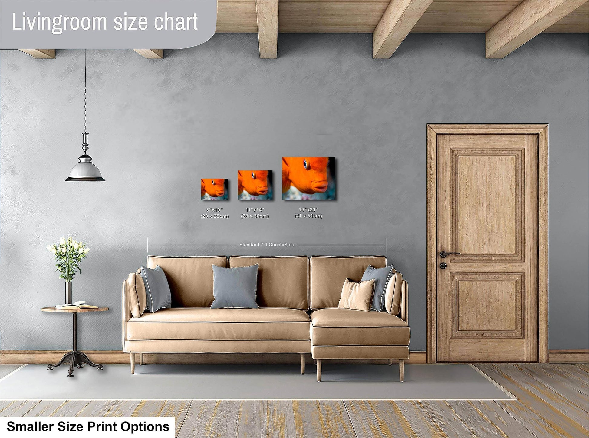 Embrace the beauty of underwater life with this captivating marine biology artwork, an inspiring and relaxing addition to your home or office decor. Dive into the colorful world of the Garibaldi with this vibrant ocean scene today!