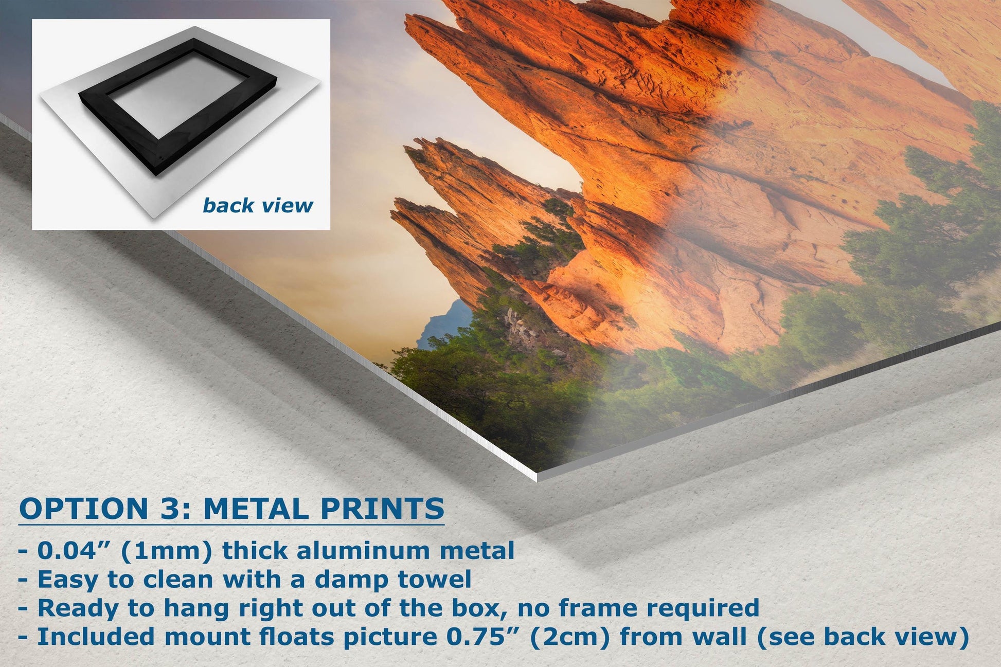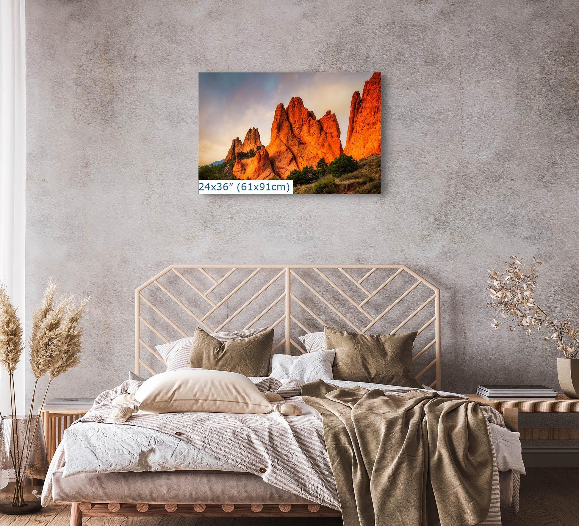 Bring the fiery magic of the Garden of the Gods into your home or office with this breathtaking Colorado mountain picture.