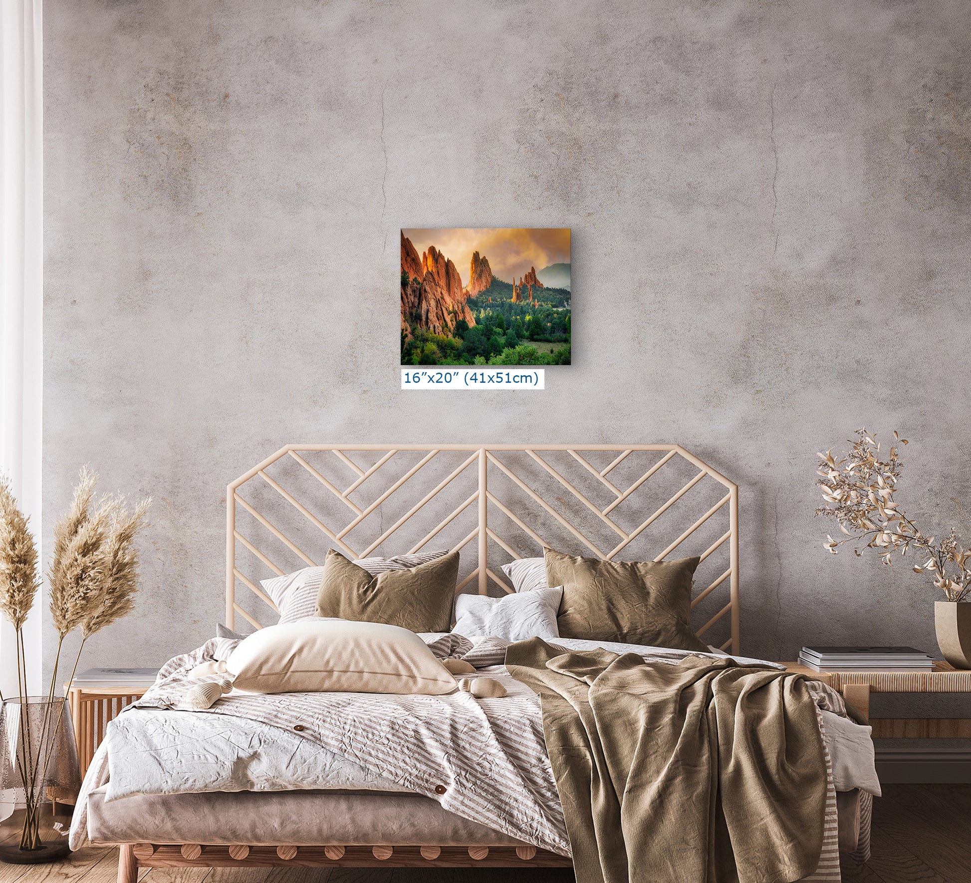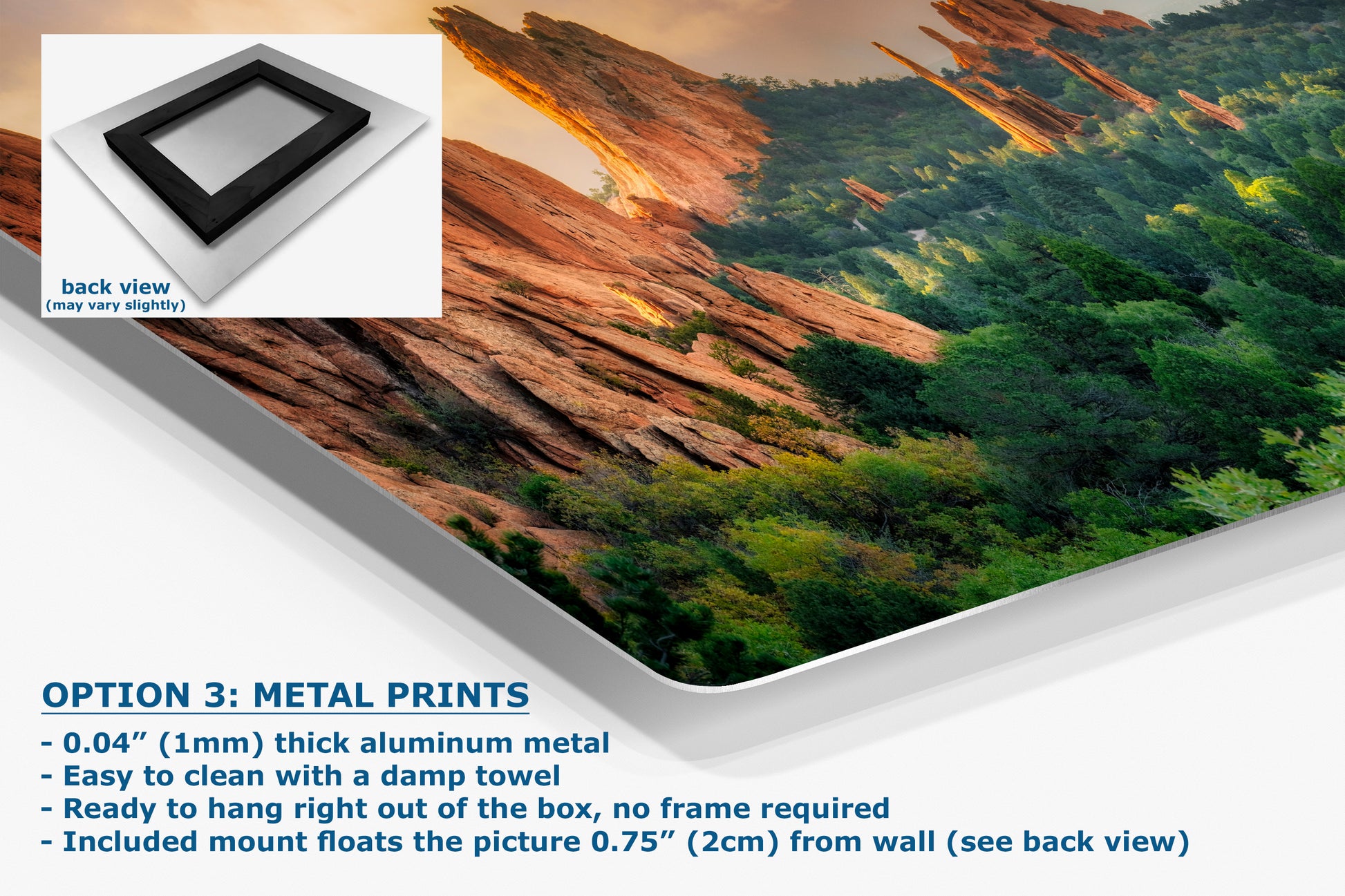 Bring the breathtaking beauty of the Garden of the Gods into your space with this stunning Colorado mountain picture photographic print.