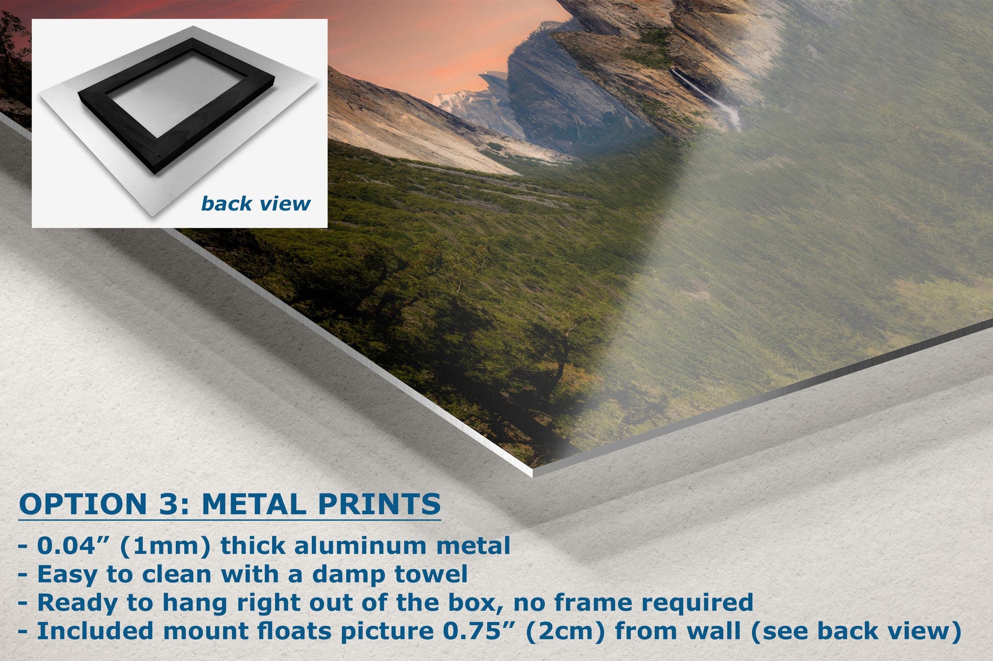 - Floating metal art: 0.04" (1mm) thick specialty coated aluminum metal includes a mount that floats the picture 0.75" (2cm) from your wall