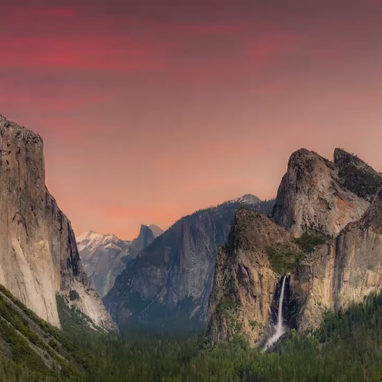 Transform your space into a sanctuary of inspiration with this breathtaking Tunnel View mountain picture from Yosemite National Park. As the sun rises over the iconic landscape, this vibrant nature photo captures the essence of serenity, showcasing the majestic Sierra Nevada landmarks including El Capitan, Bridalveil Falls, and Half Dome, all bathed in a warm, golden glow.