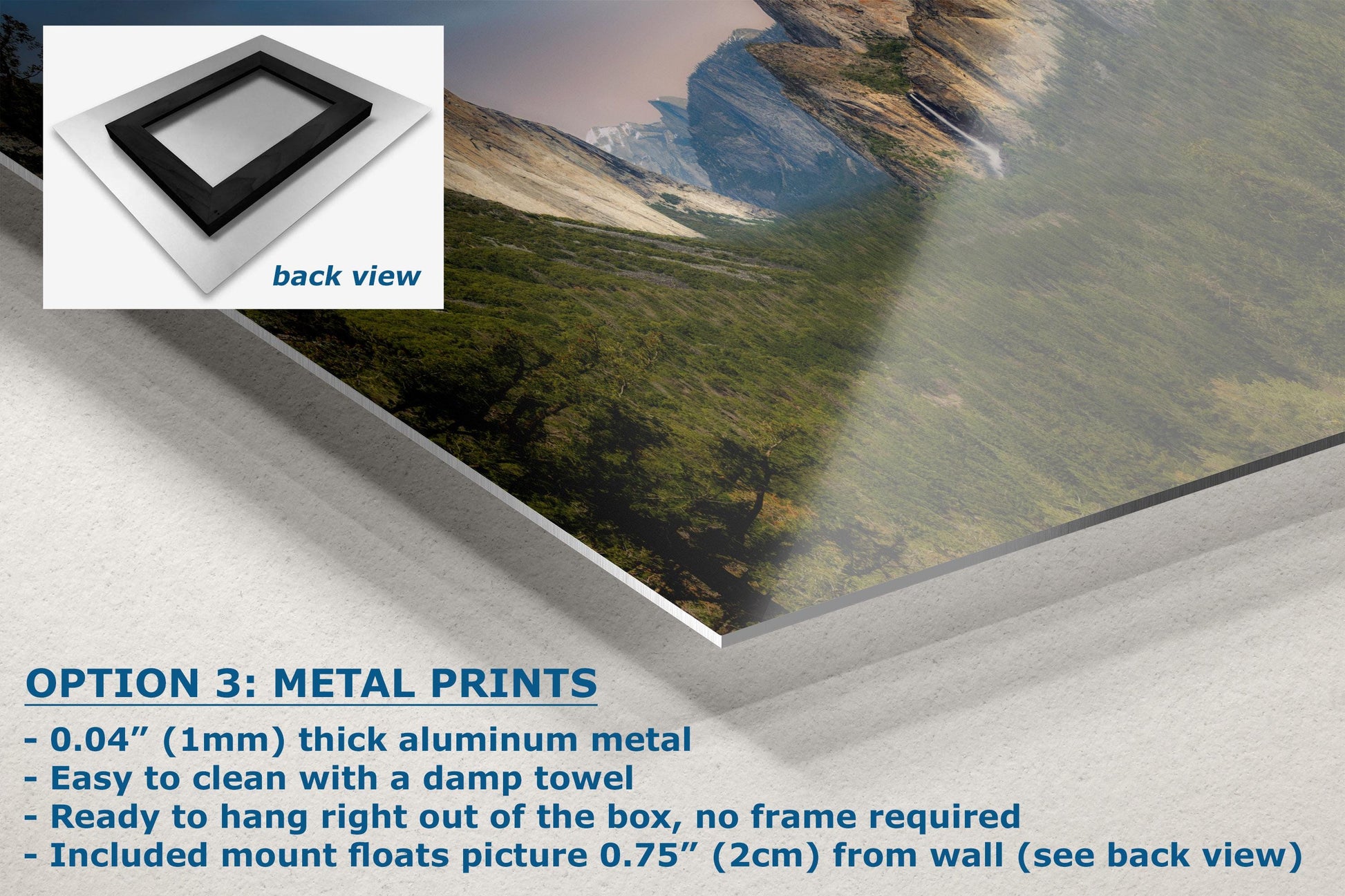 - Floating metal art: 0.04" (1mm) thick specialty coated aluminum metal includes a mount that floats the picture 0.75" (2cm) from your wall