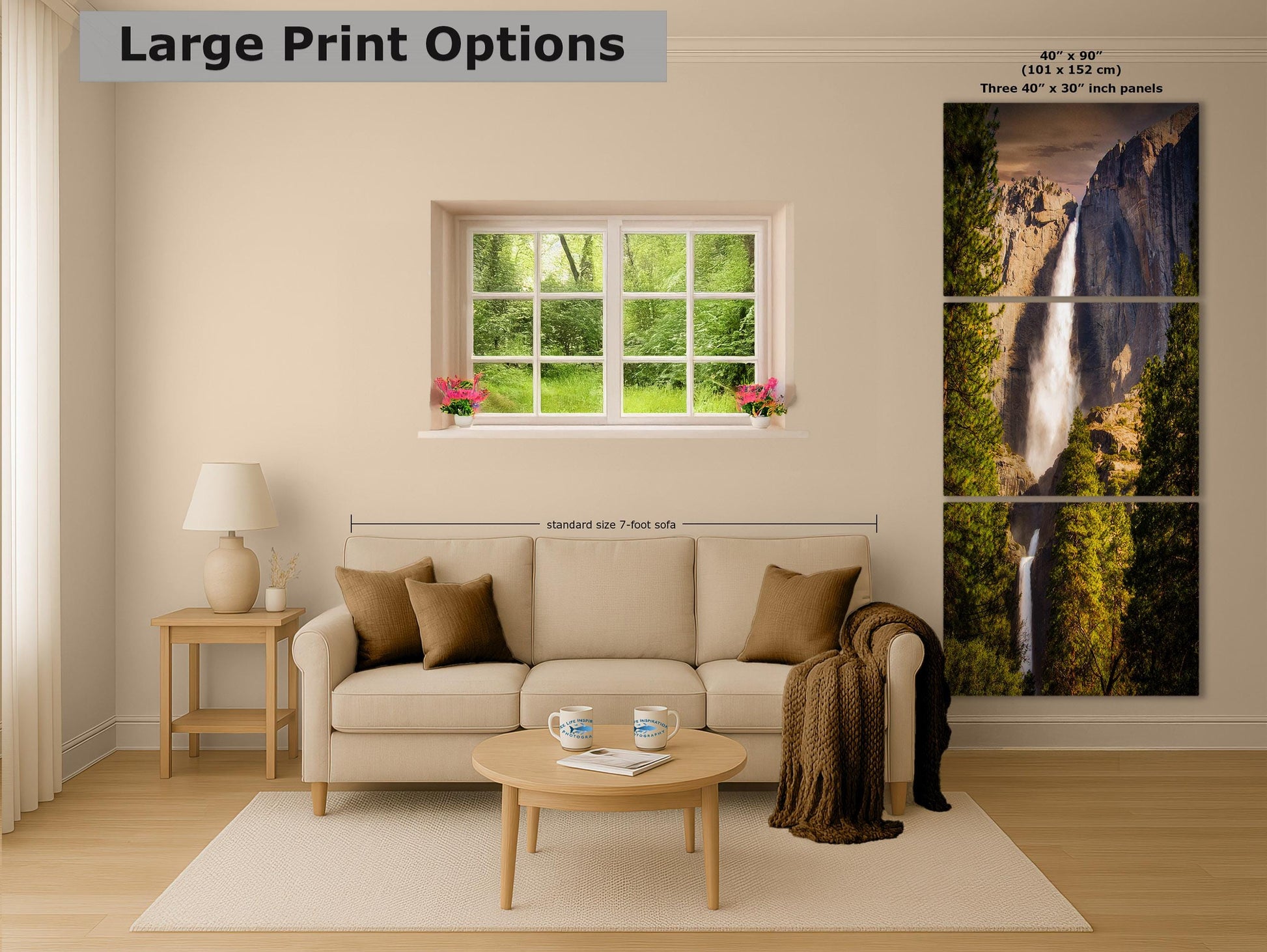 Whether you're decorating a living room, office, bedroom, or dorm room, this Yosemite National Park nature photo offers a peaceful escape from everyday stress. Its vibrant imagery creates a calming atmosphere, making it ideal for meditation spaces or as inspiring wall art in your workspace.