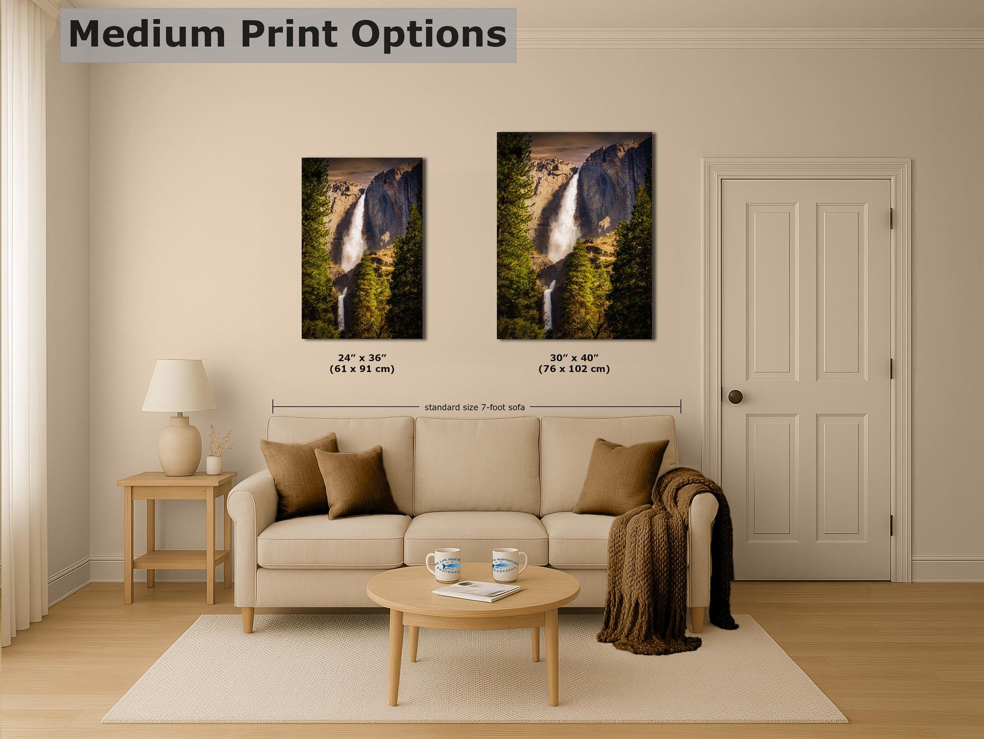Bring the breathtaking beauty of Yosemite National Park into your space with this stunning Yosemite Falls waterfall picture.