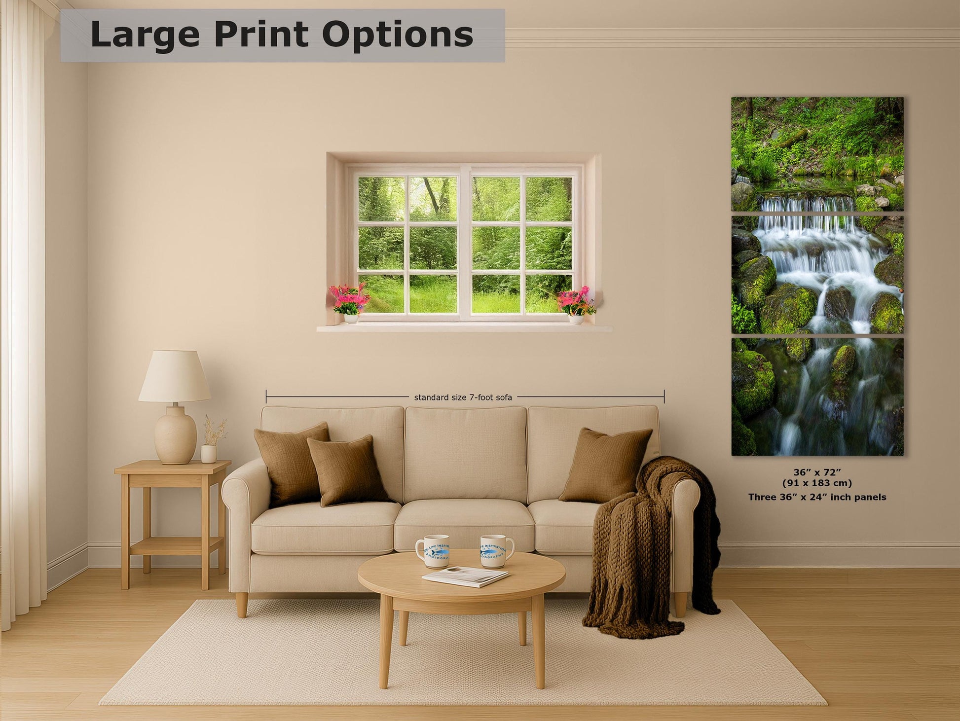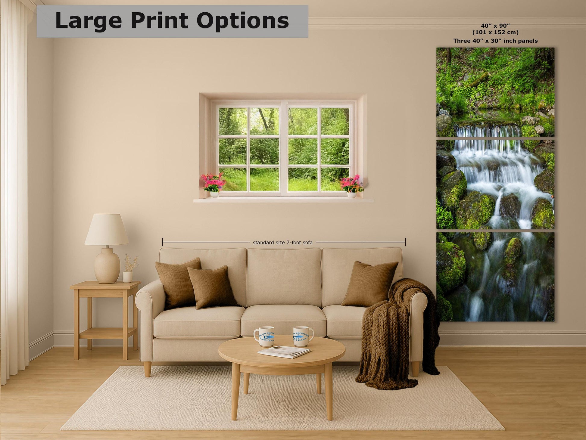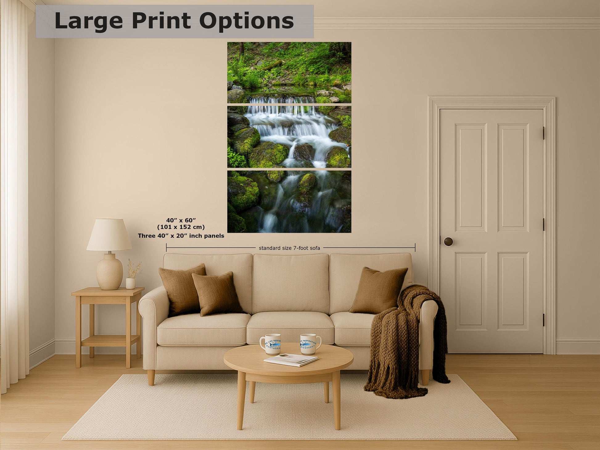 Showing the full cree, the intricate details of the waterfall and lush greenery make this giant canvas print a captivating focal point. Its vibrant colors and lifelike imagery provide a dopamine decor experience, inspiring calm and serenity in any space. Crafted with high-quality materials, this artwork ensures durability and long-lasting beauty.