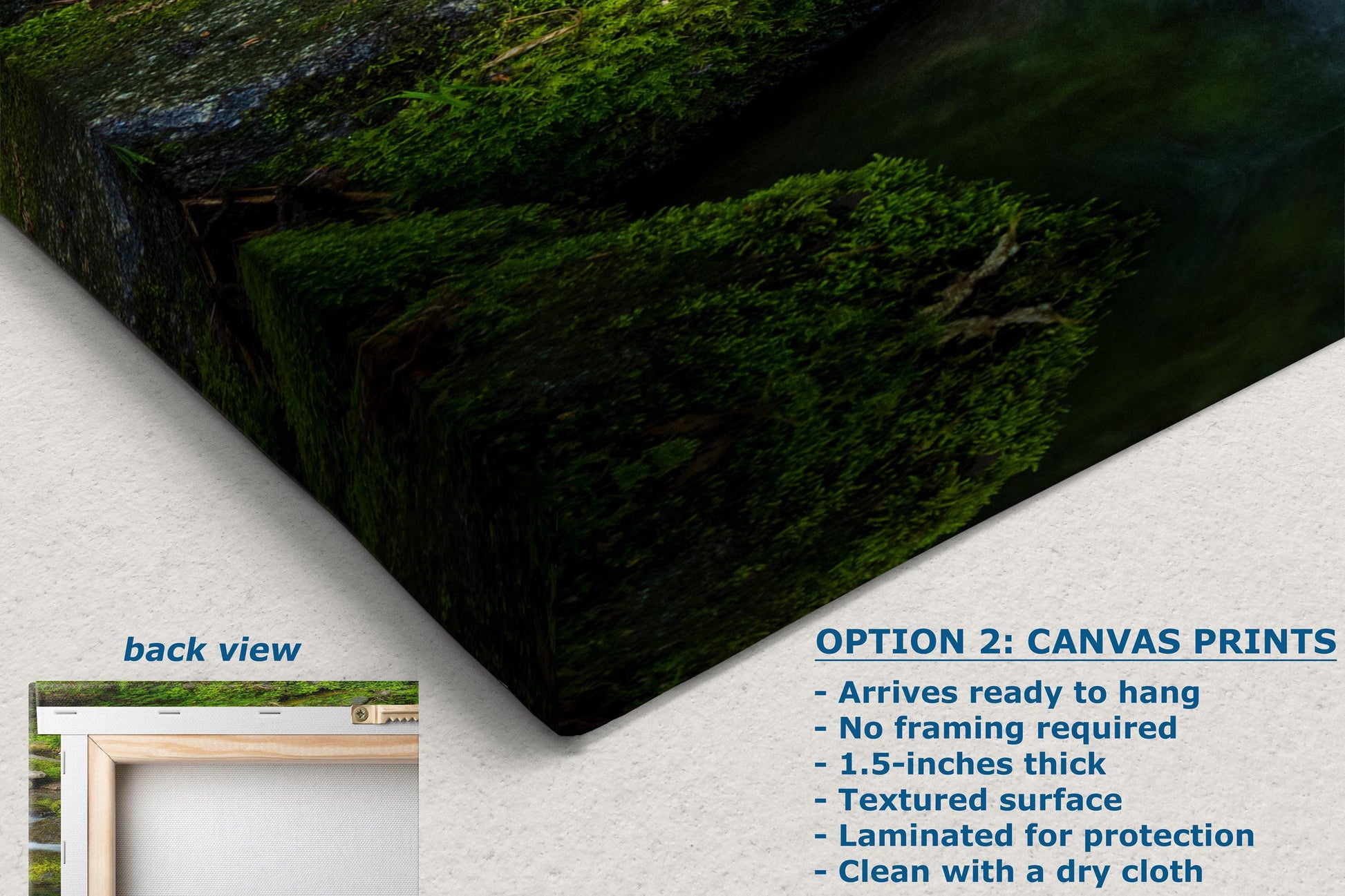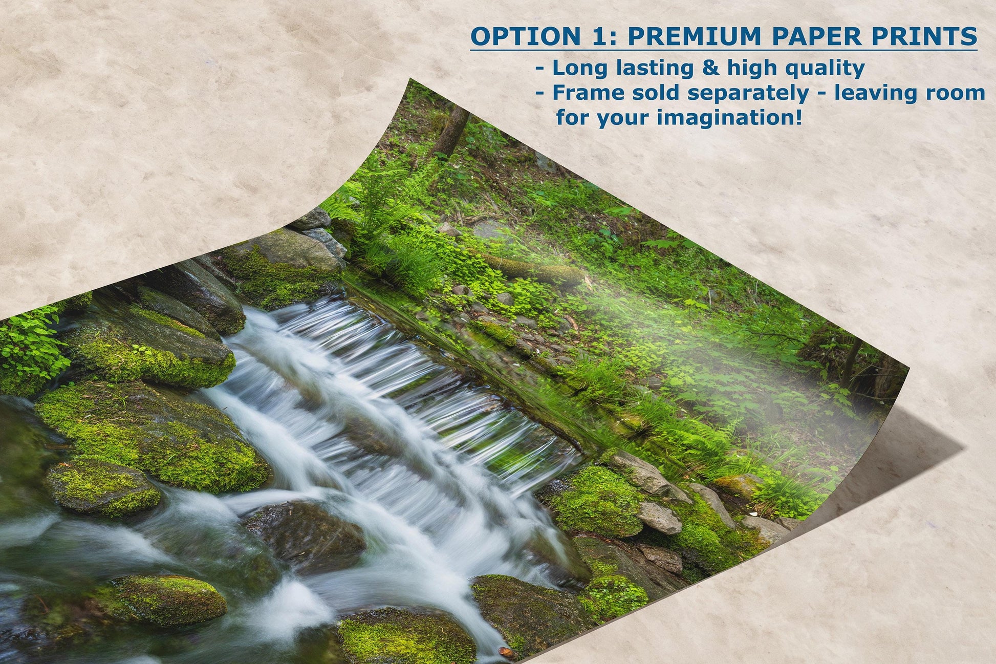 Perfect for relaxation, meditation, or simply adding a touch of nature’s tranquility, this nature photo captures the gentle flow of water cascading over moss-covered rocks of Fern Creek. Whether you're decorating a living room, office space, dorm room, or creating a peaceful ambiance in your meditation area, this artwork is an ideal choice.